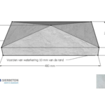 Voorzien van een waterhol 10 mm van de rand waarbij u rekening kunt houden met een overstek van 25 mm buiten uw metselwerk.